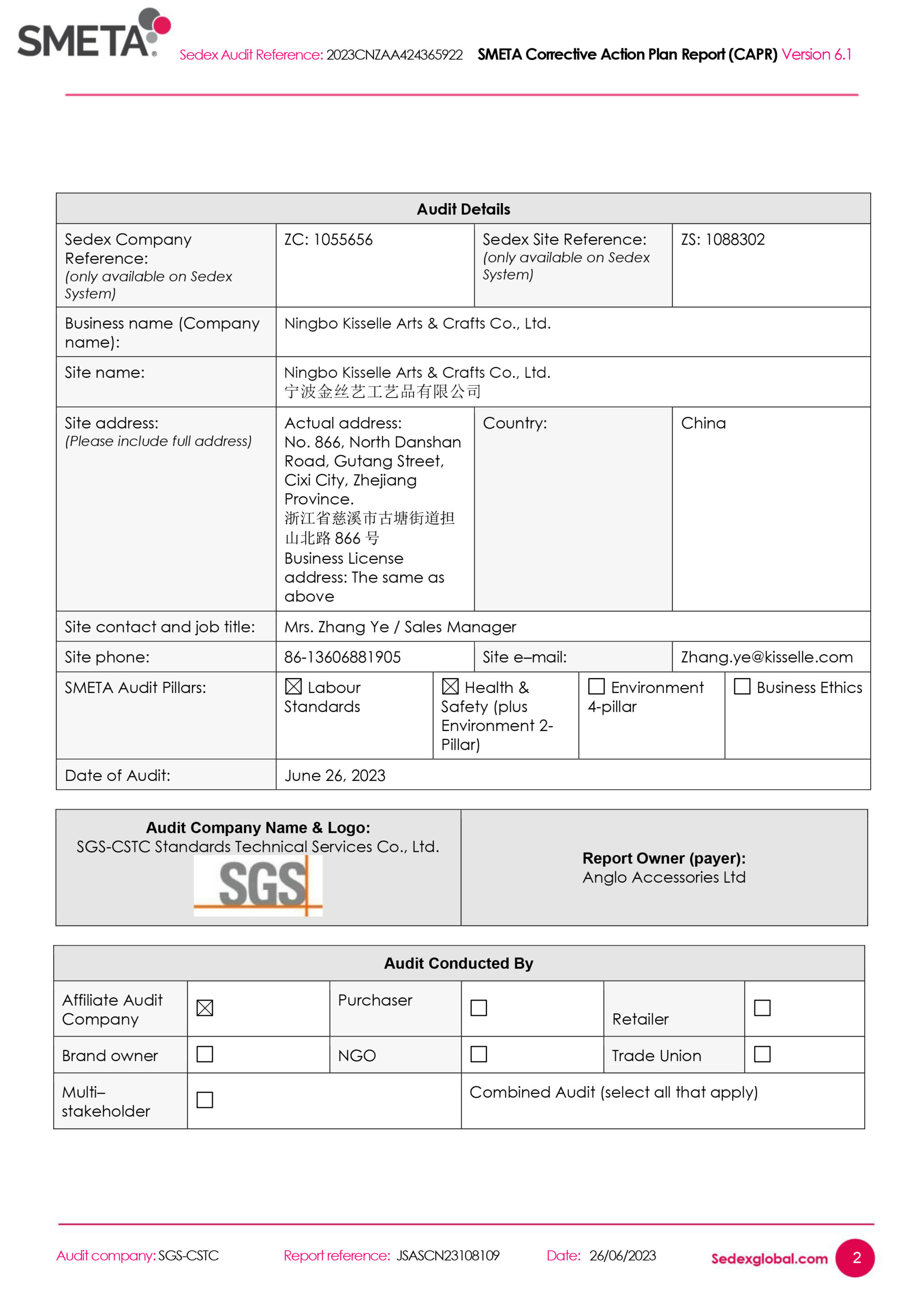 • SMETA Corrective Action Plan Report (CAPR)