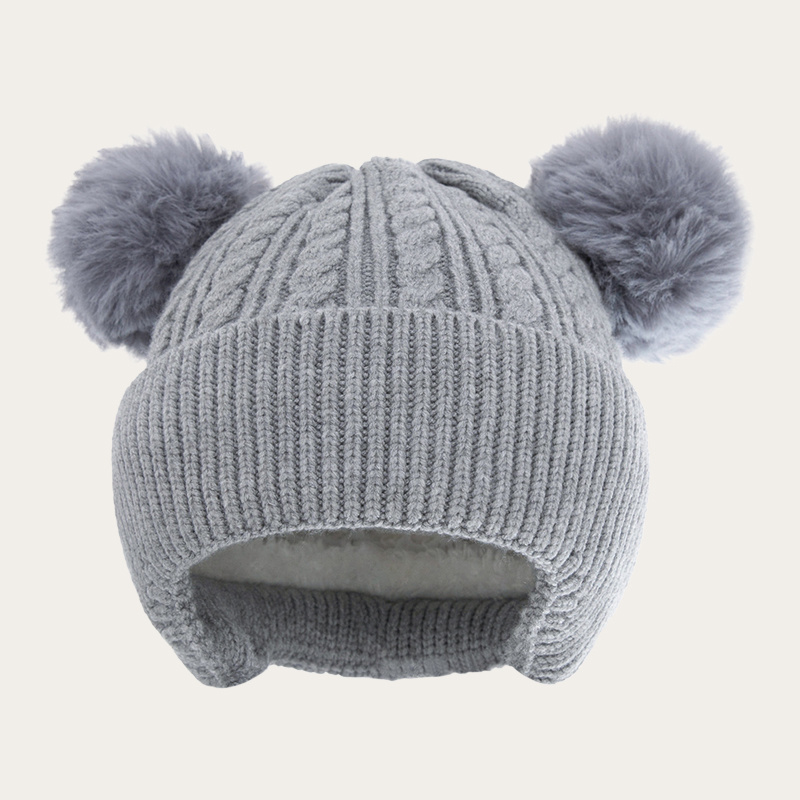 Solid color double ball hat for children