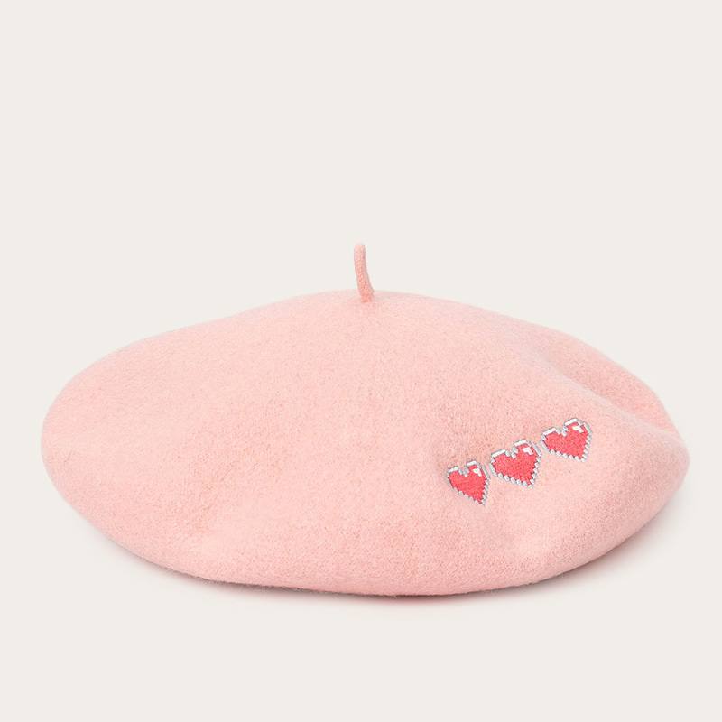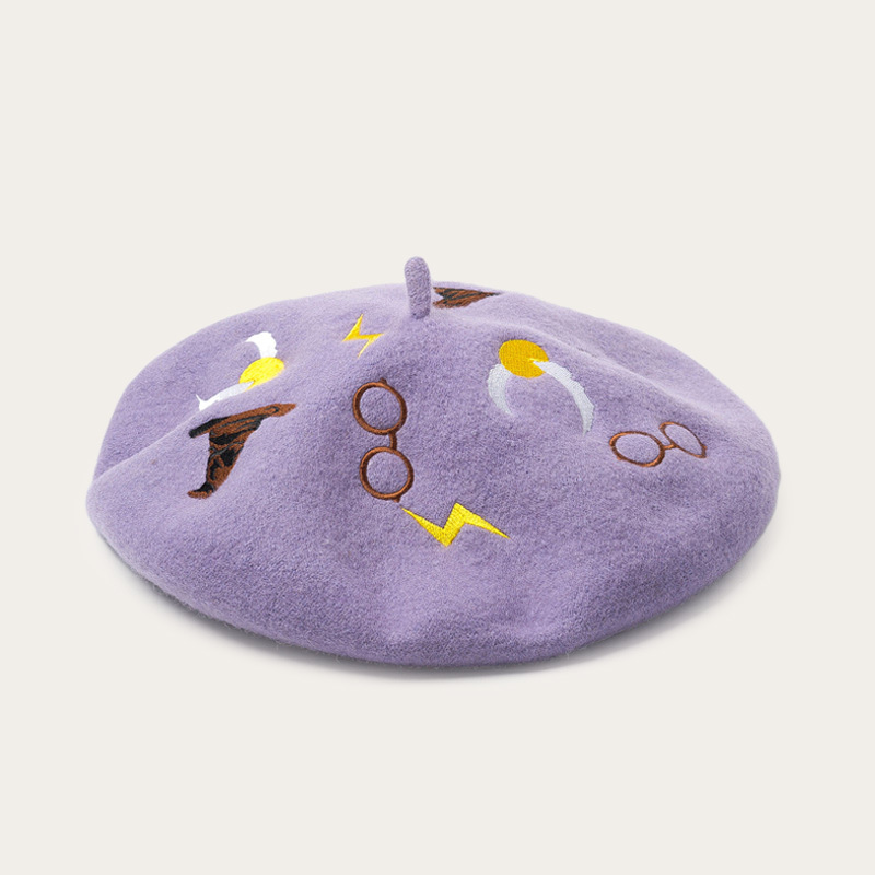 Patterned embroidered woollen beret