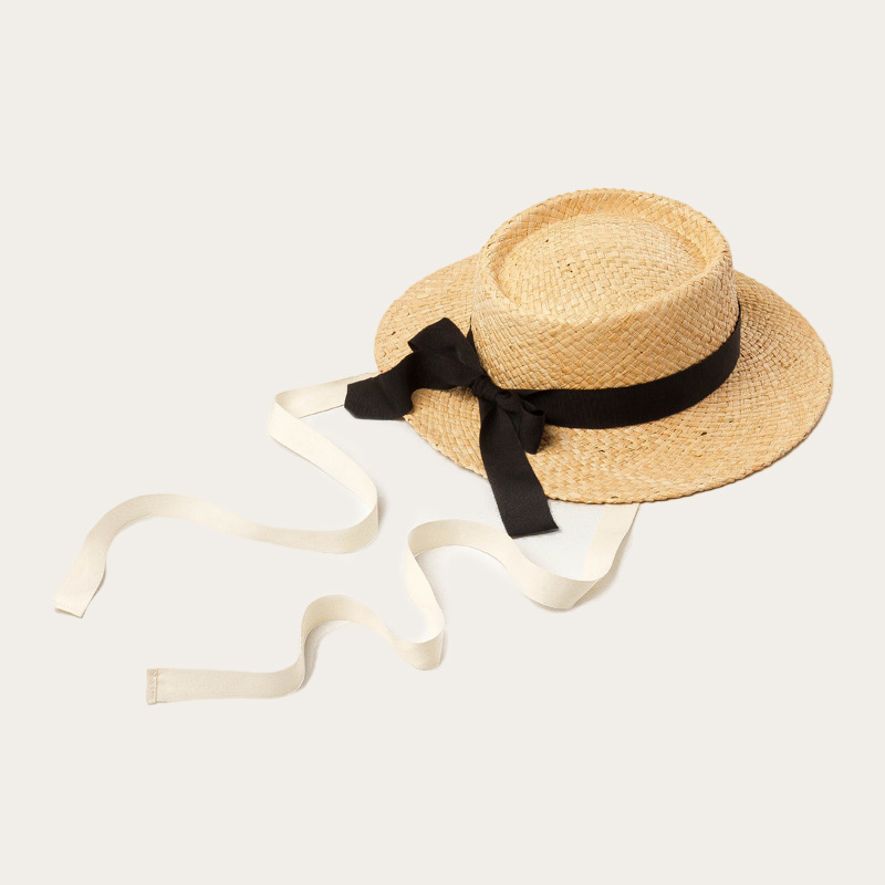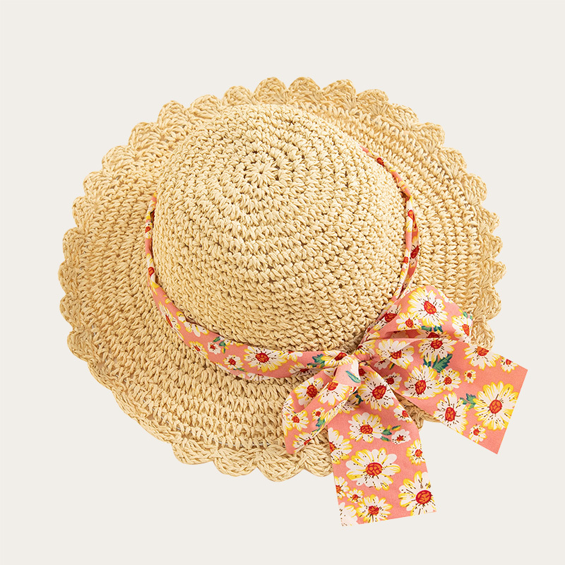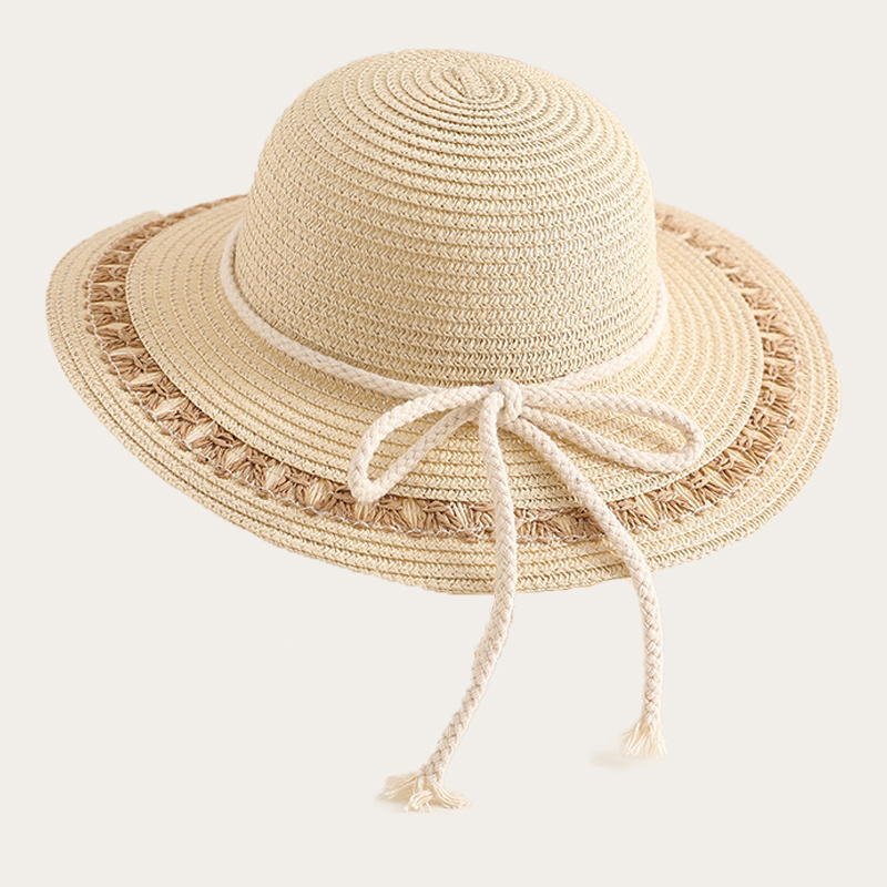 Straw hat with bow and brim for children