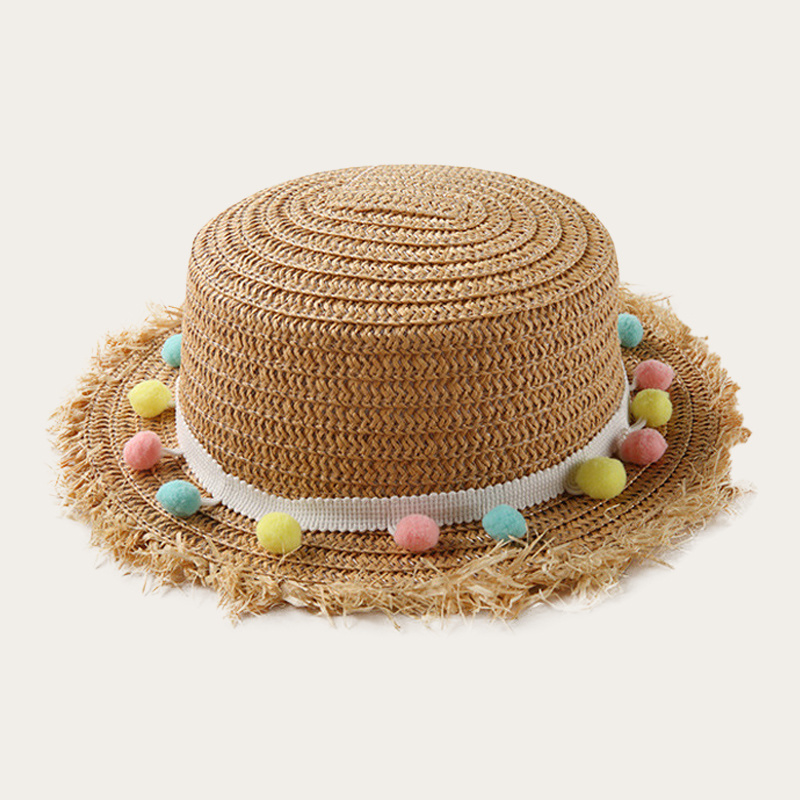 Children’s wave trimmed trimmed straw hat with straw