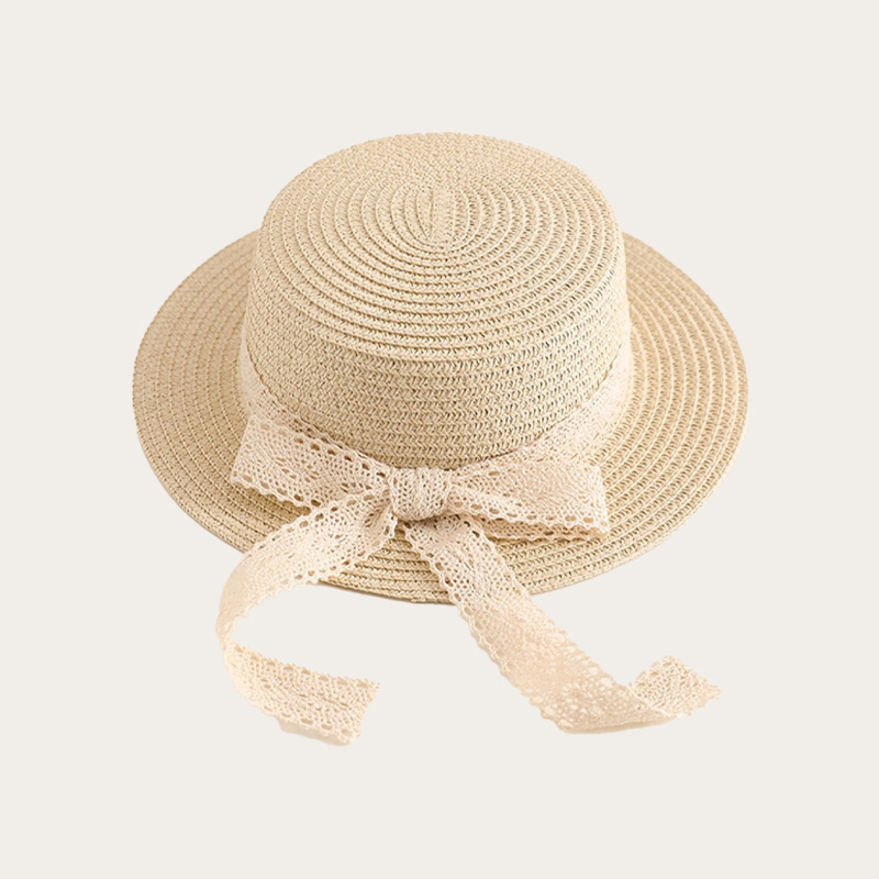Straw hat with lace and bow for children