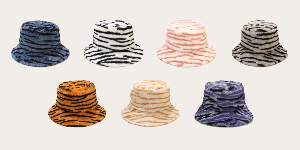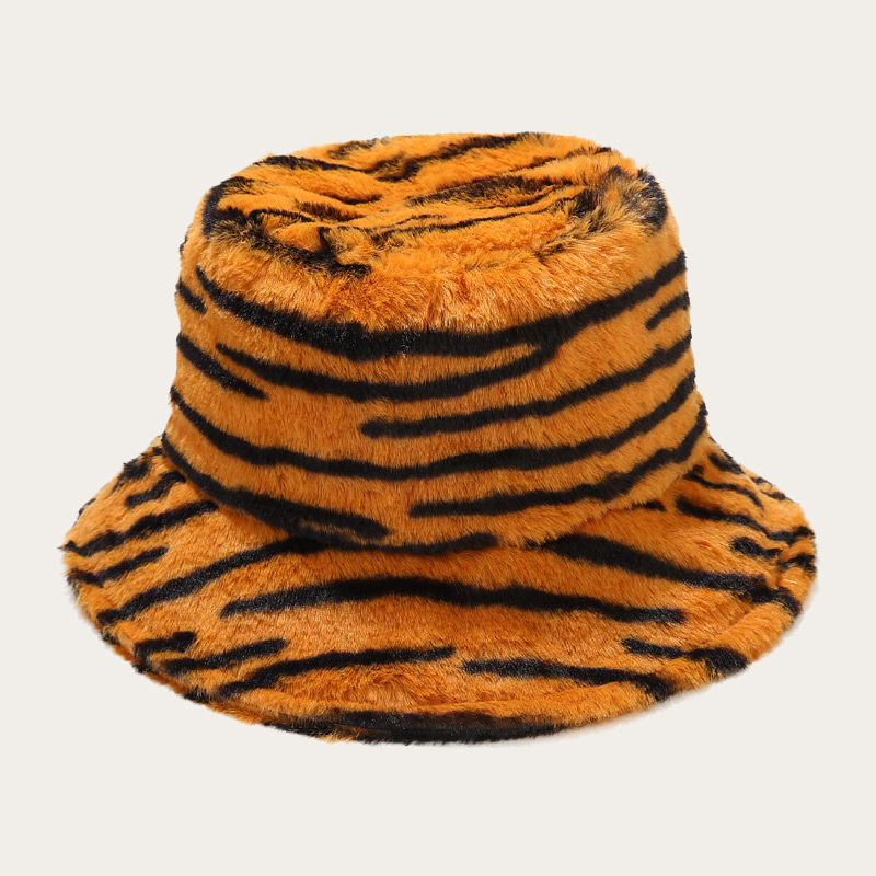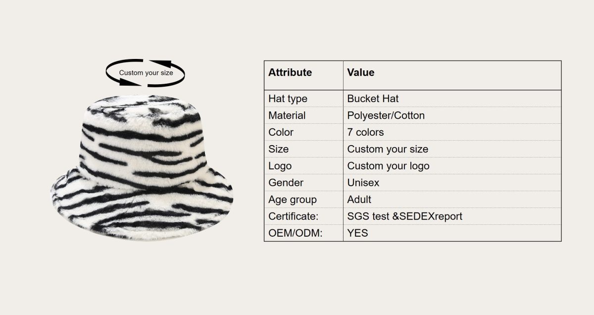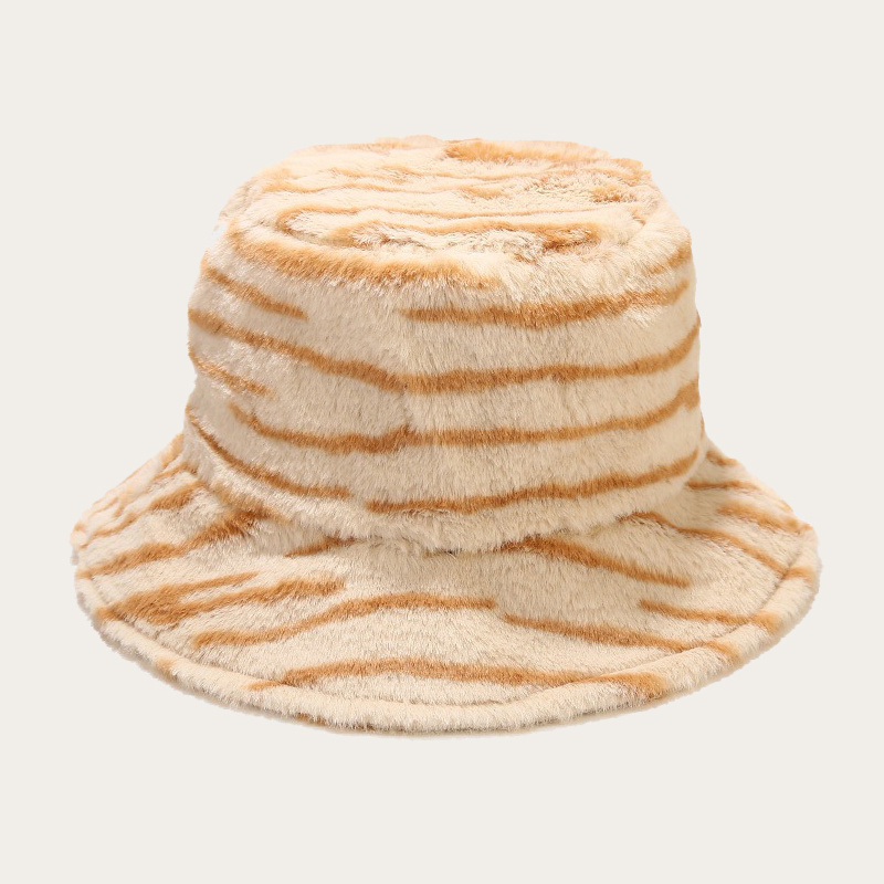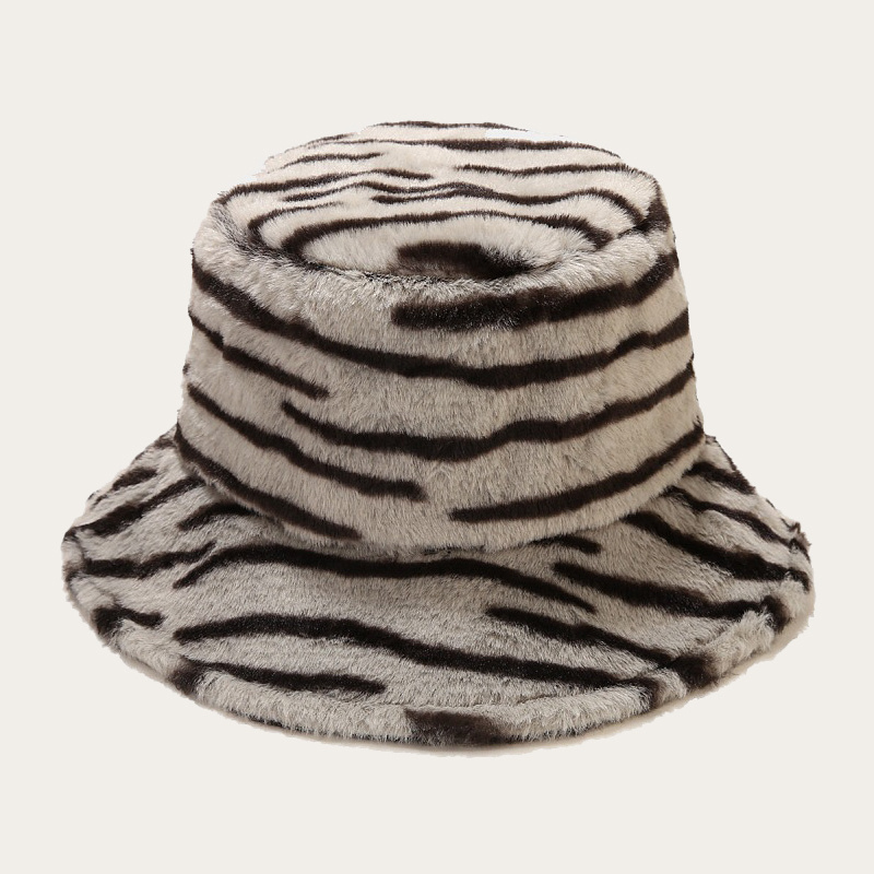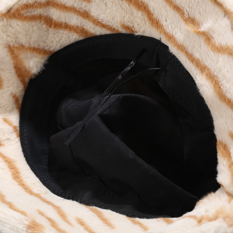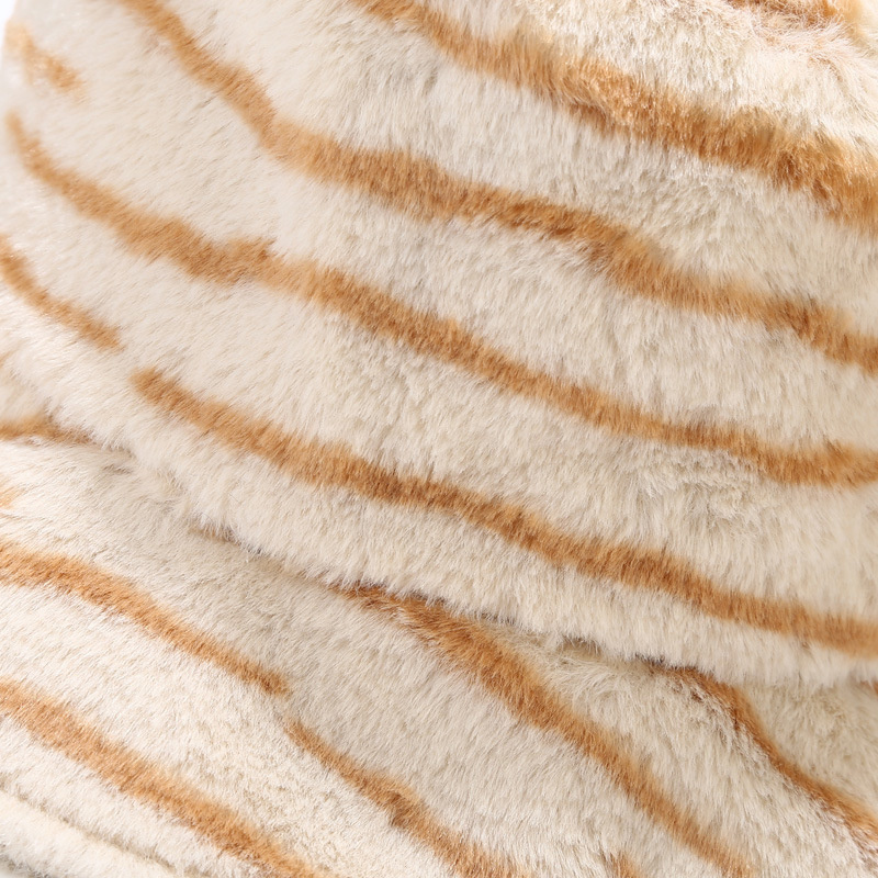 Black and white striped fisherman hat, plush material, soft, comfortable and warm, suitable for outdoor travel against cold and wind.