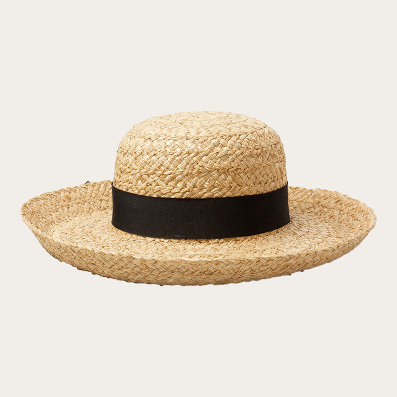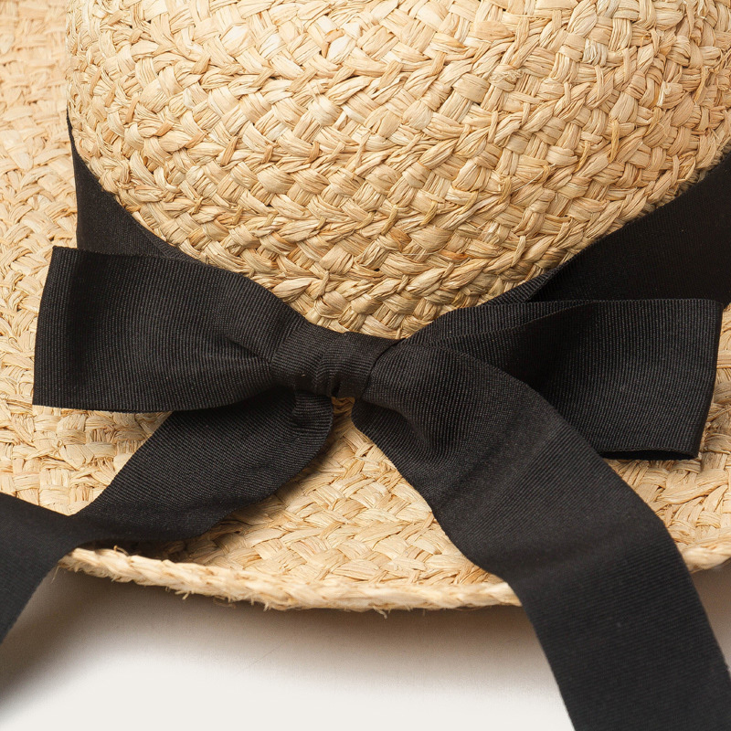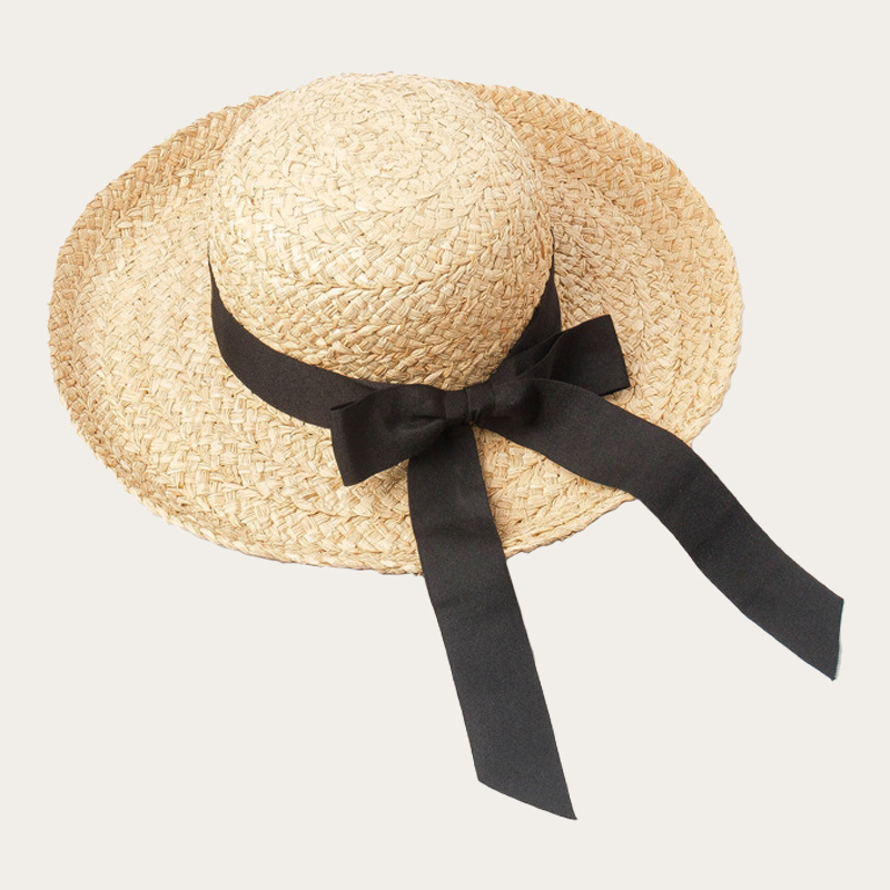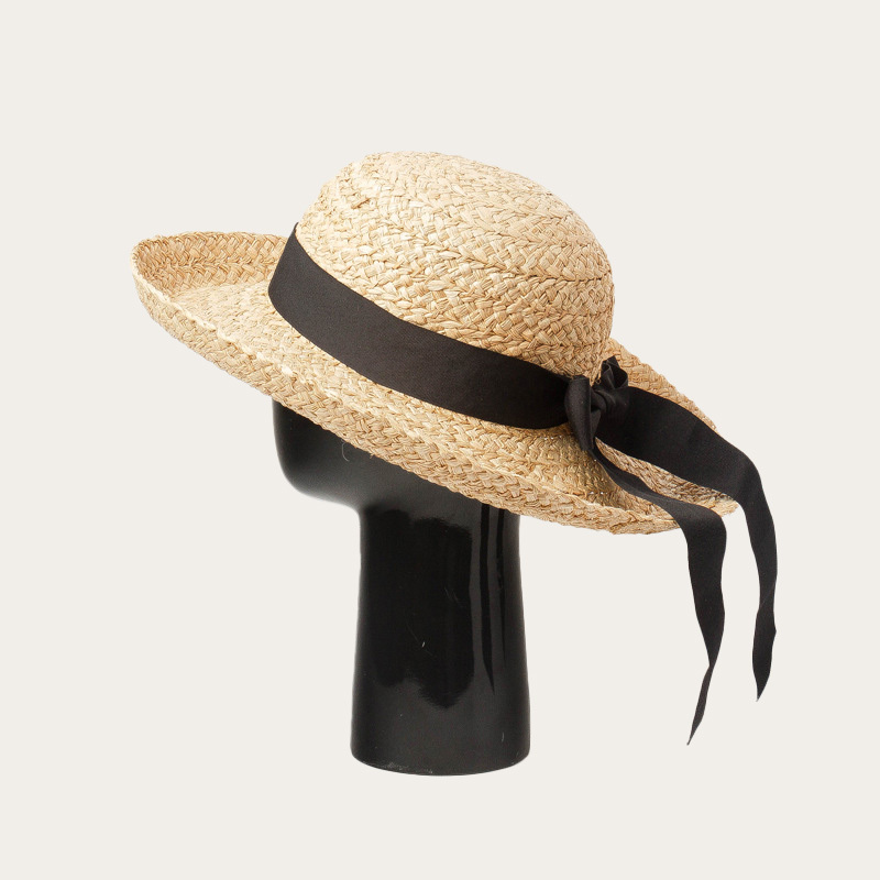 Bow-tied straw hat with a domed brim