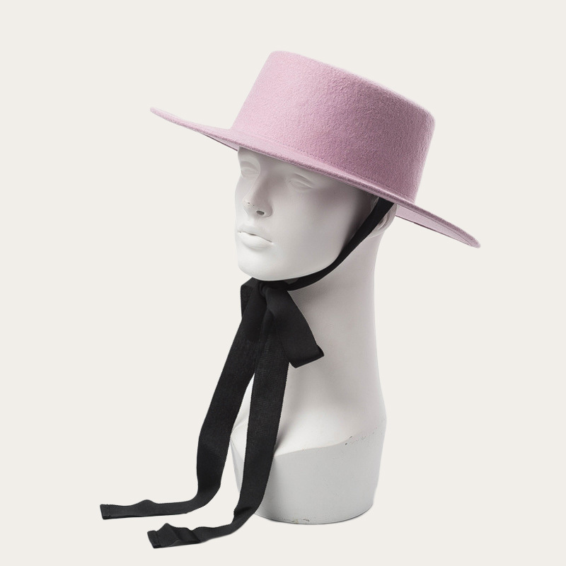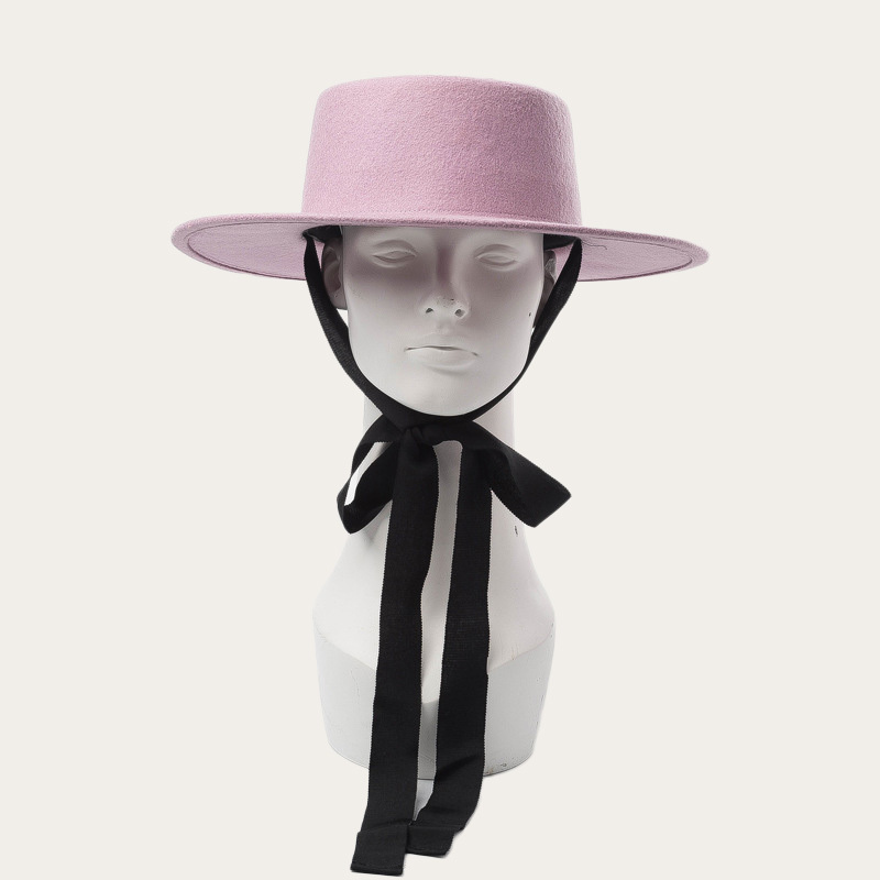 Bundled woollen flat top hat