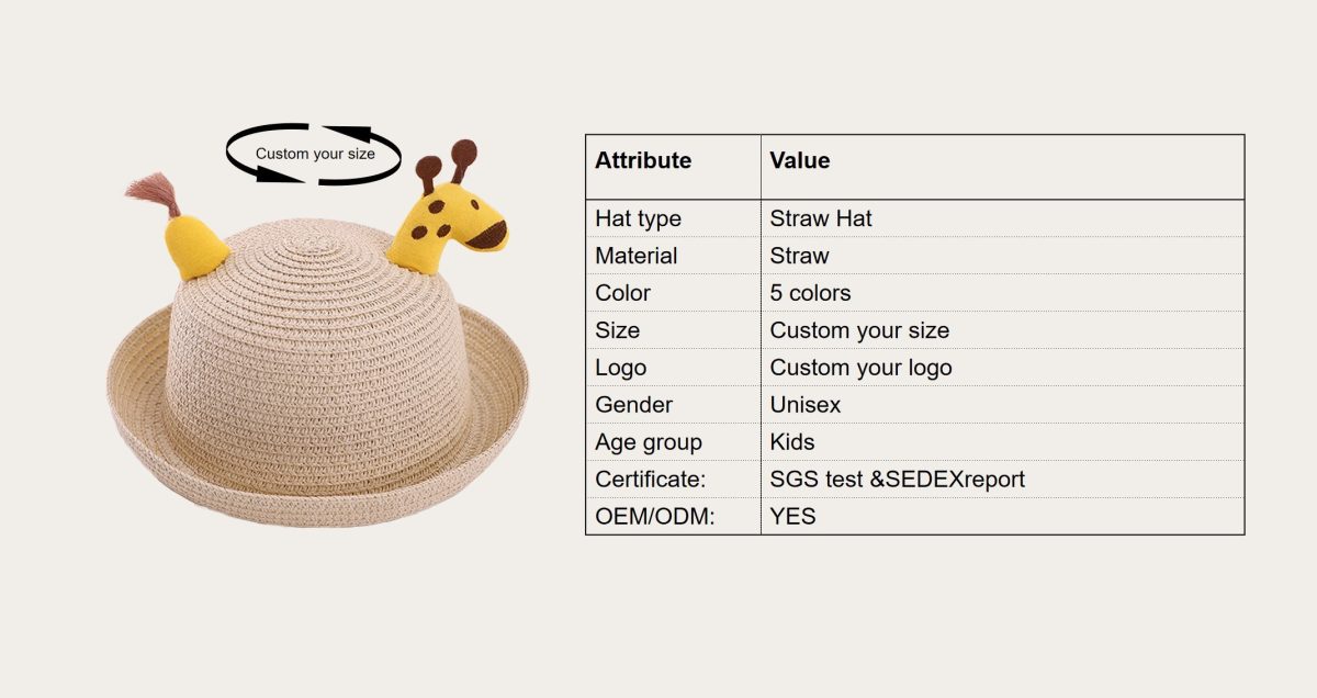 Children's cartoon deer straw hat, cap top adopts lovely deer shape, super cute, suitable for summer baby travel sunshade sunscreen.