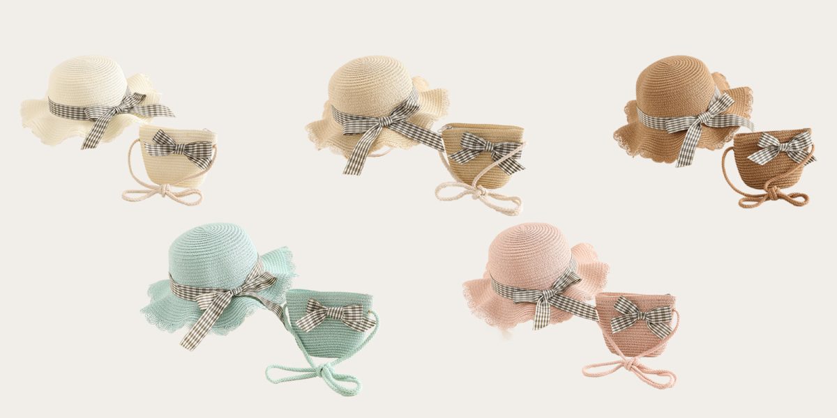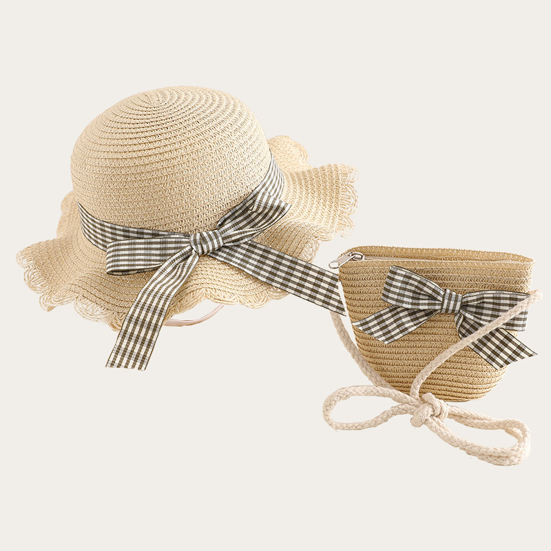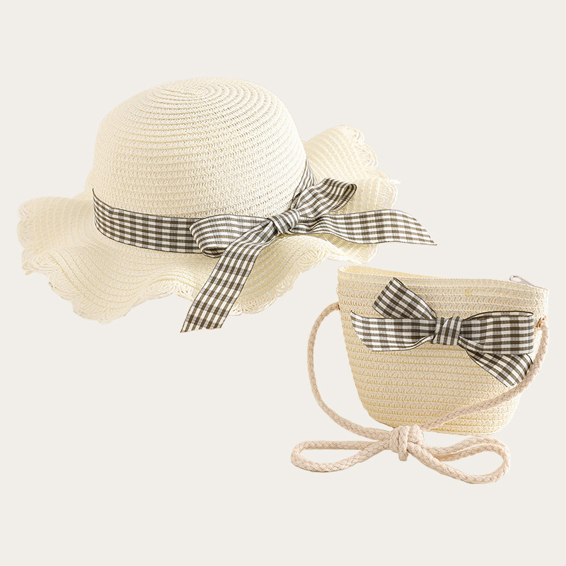 Children’s checkered bow hat bag set