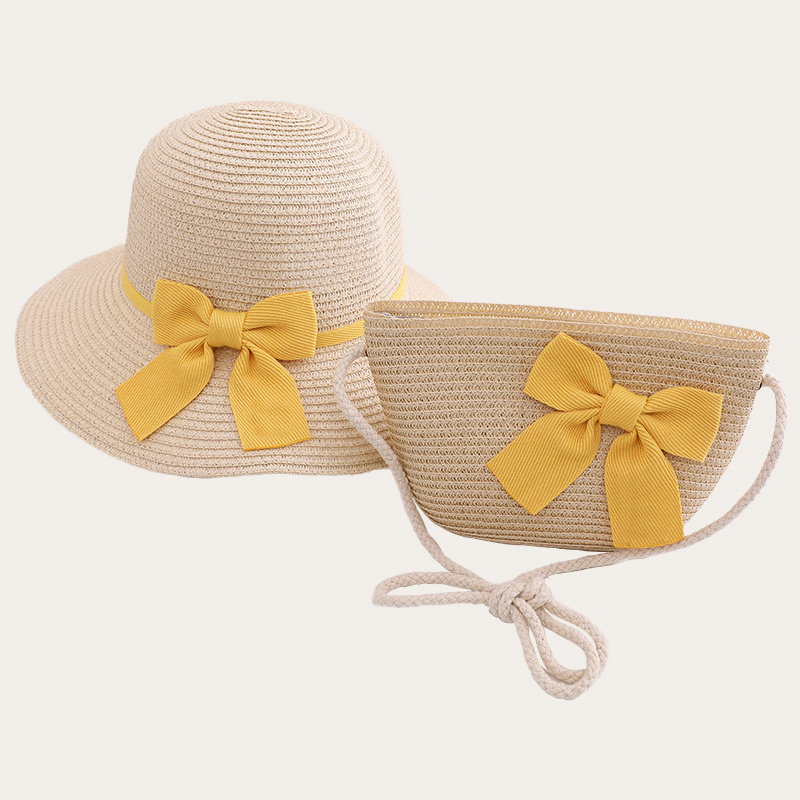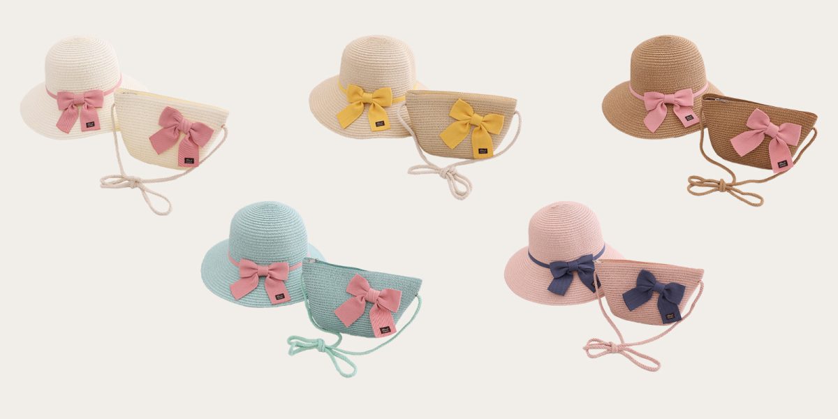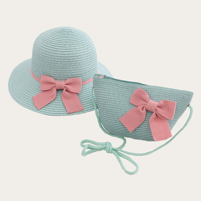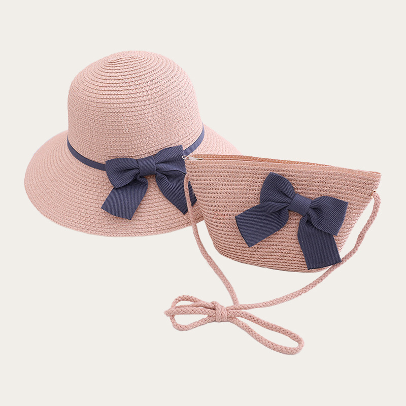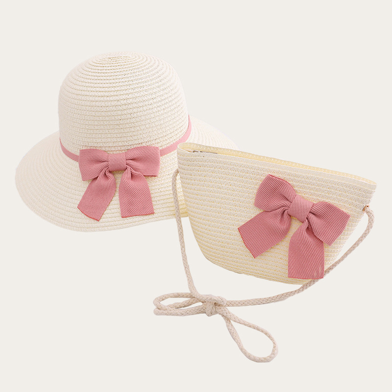 Children’s hat and bag set with pink bow