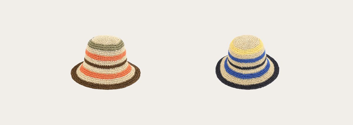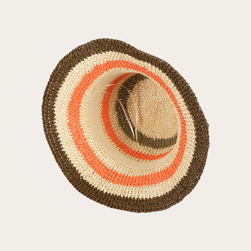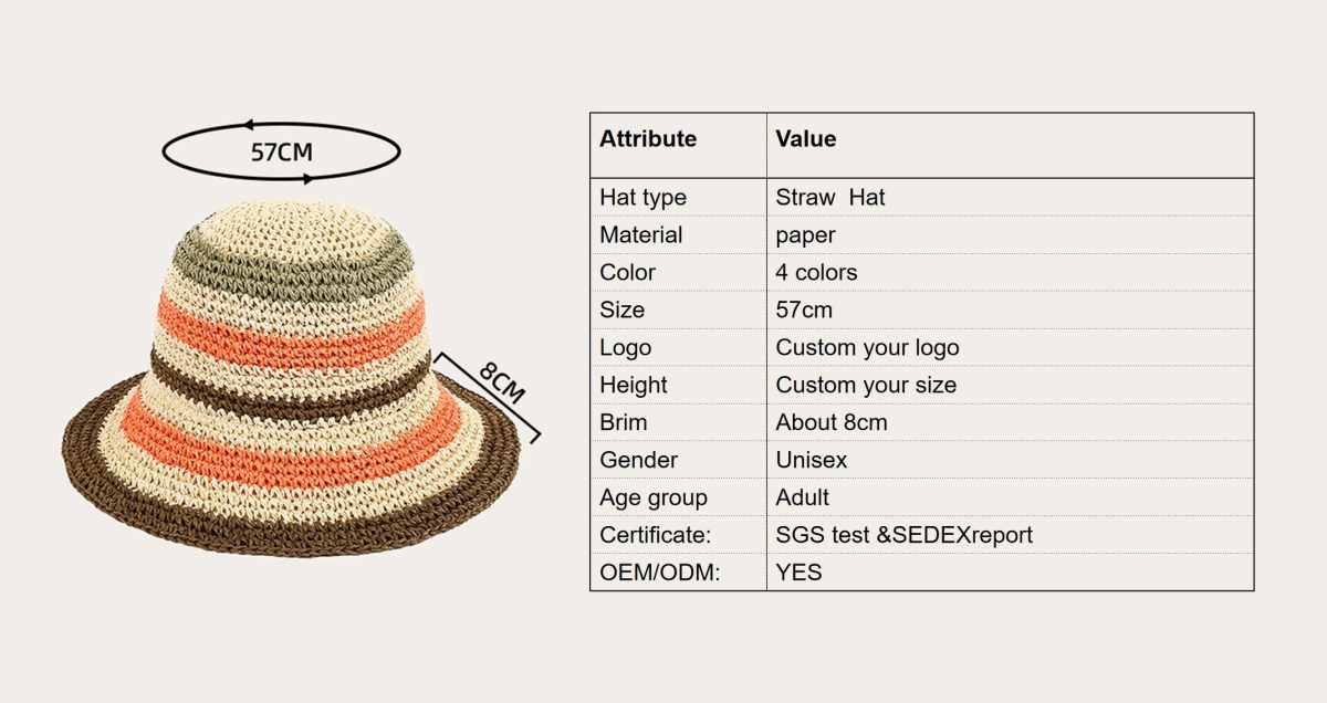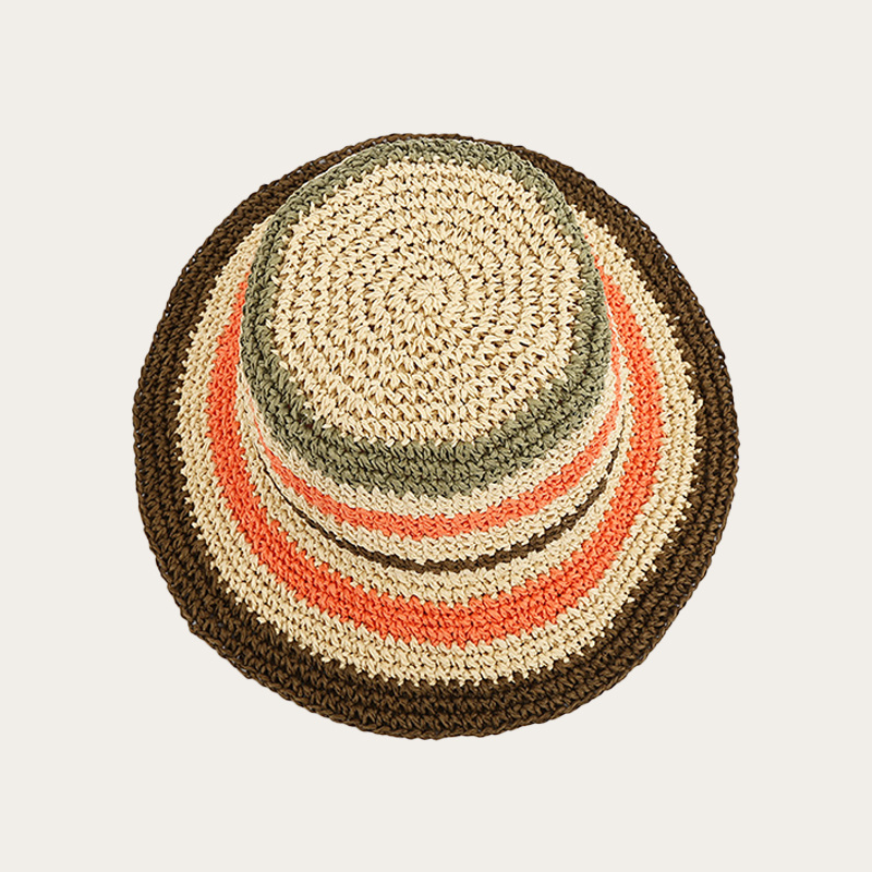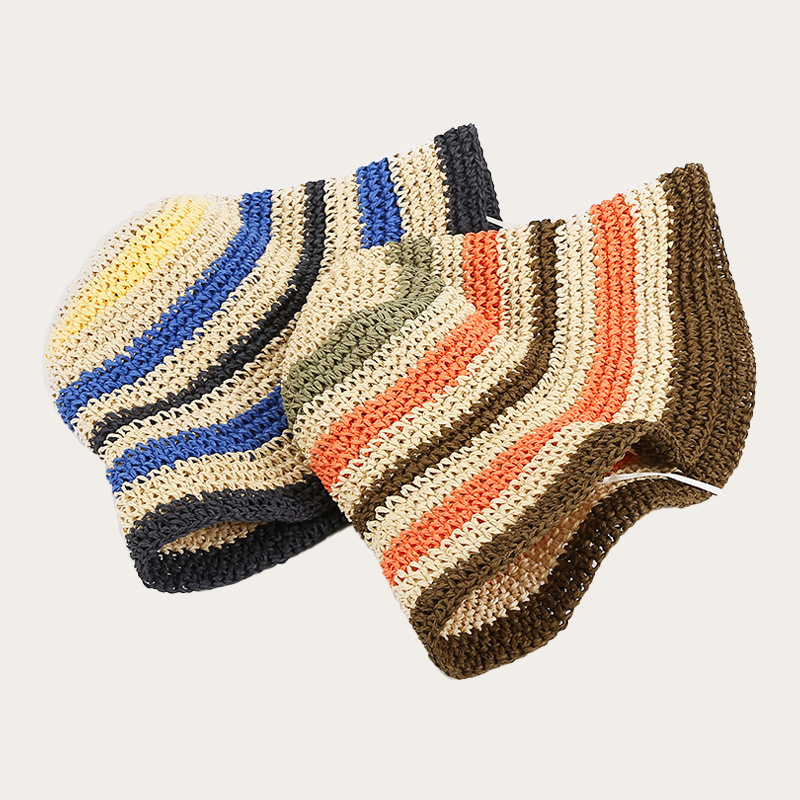 Colorful striped fisherman's hat, handmade crochet papystraw hat good quality foldable, suitable for summer sun protection.