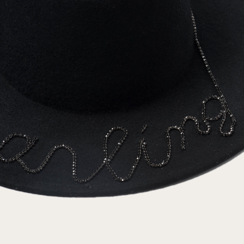 Diamond embellished woollen wide brimmed jazz top hat