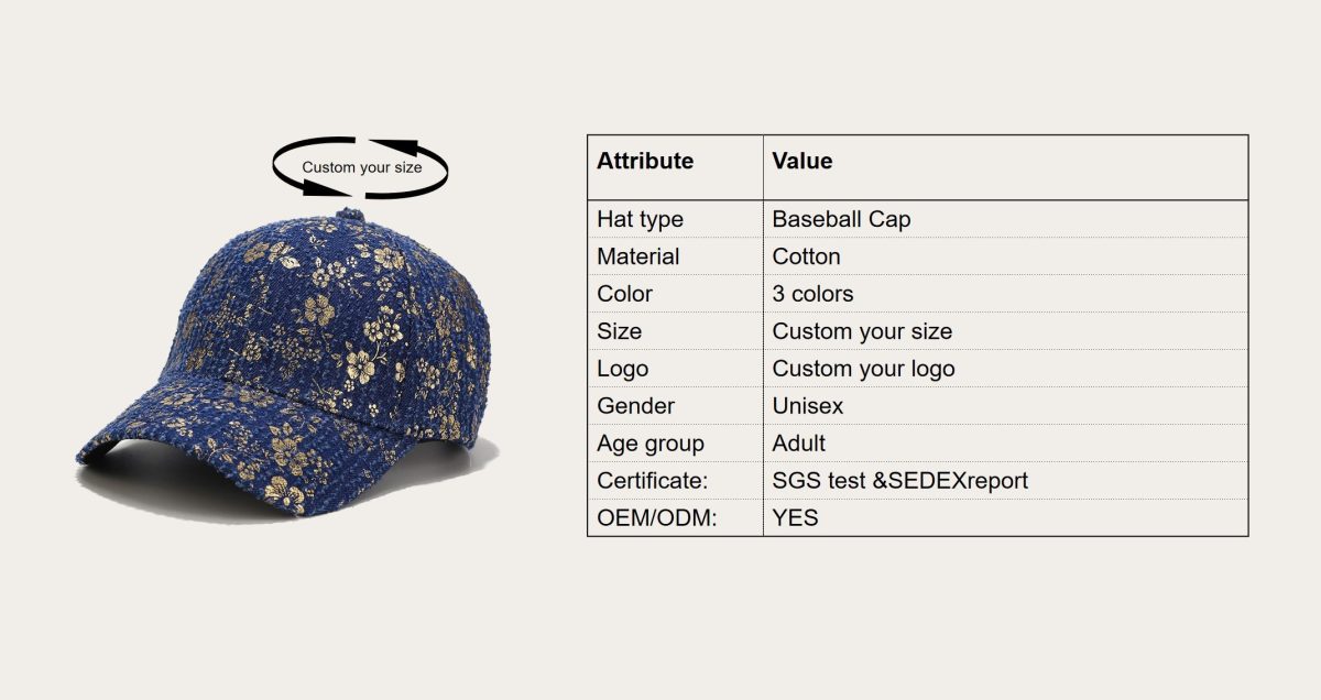 Gilded flower baseball cap