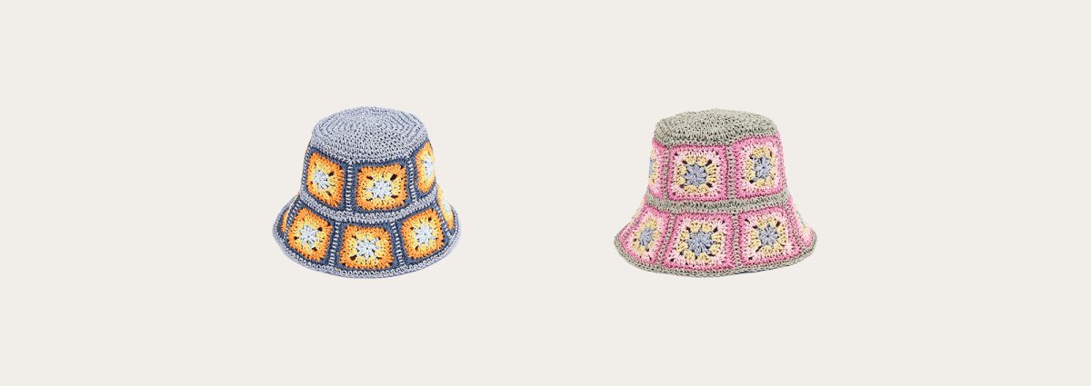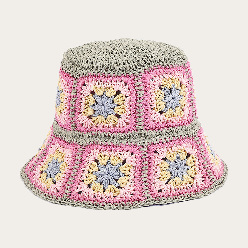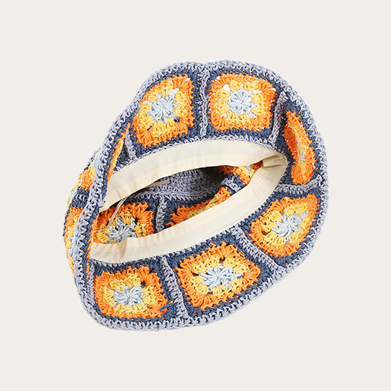 Hand crocheted colorful square fisherman hat