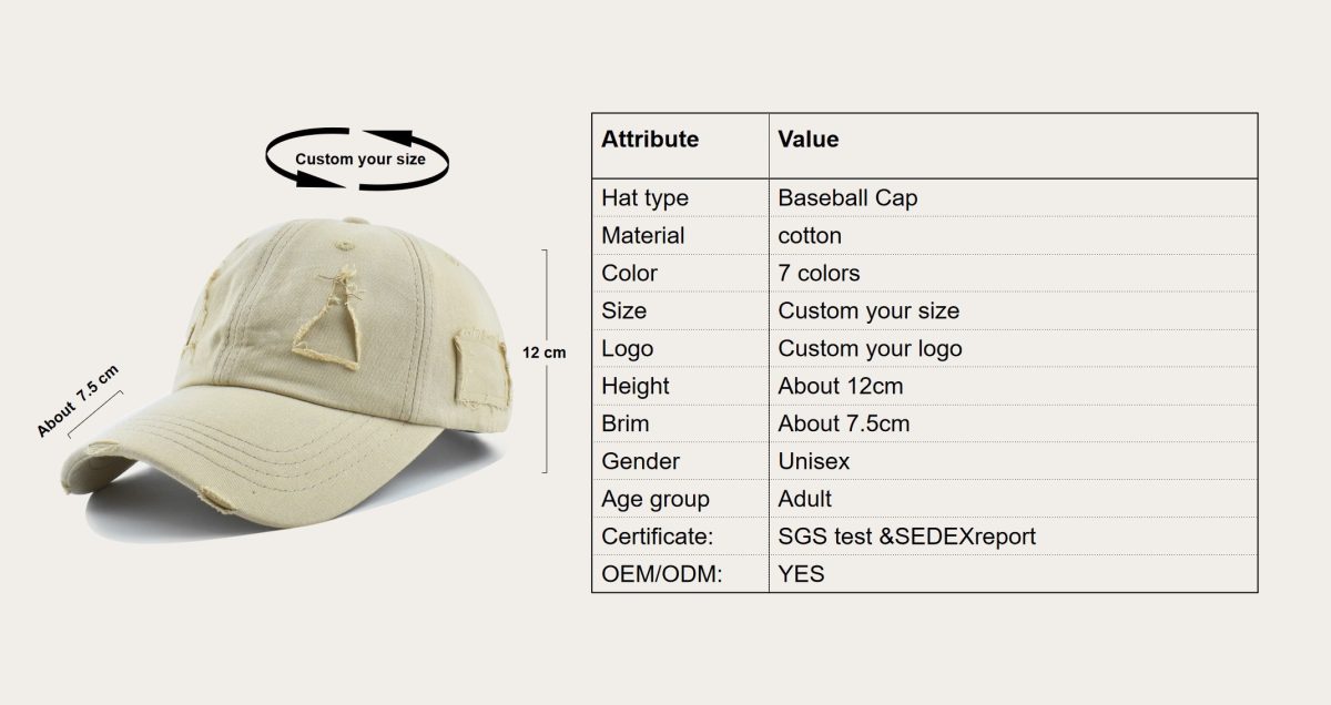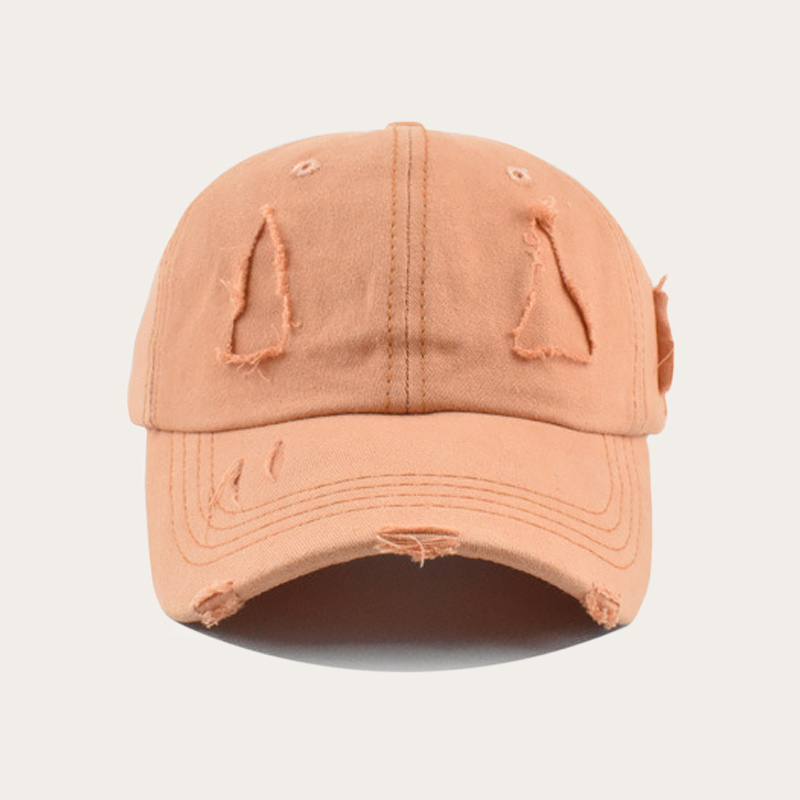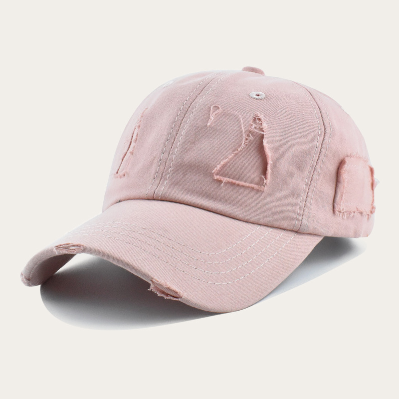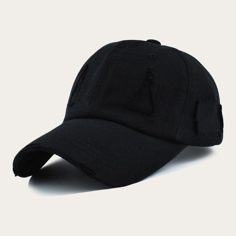 The baseball cap with holes and cloth is simple and fashionable, casual and versatile, suitable for outdoor travel in spring and summer.