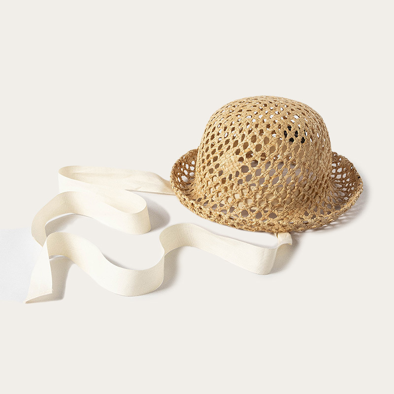 Hollow straw hat with tie for children