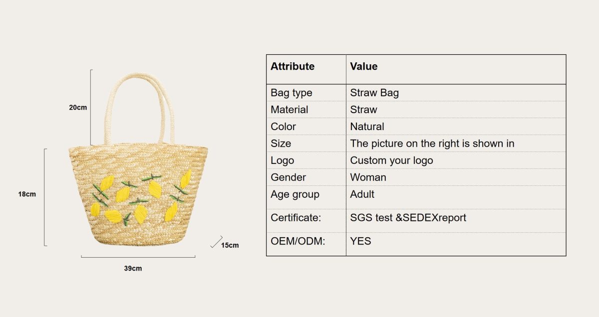 Woven from quality grass and embroidered with lemongrass, this handbag is simple and stylish for other occasions such as a beach vacation.