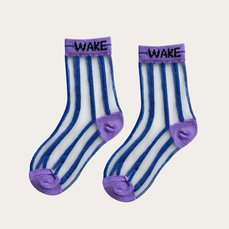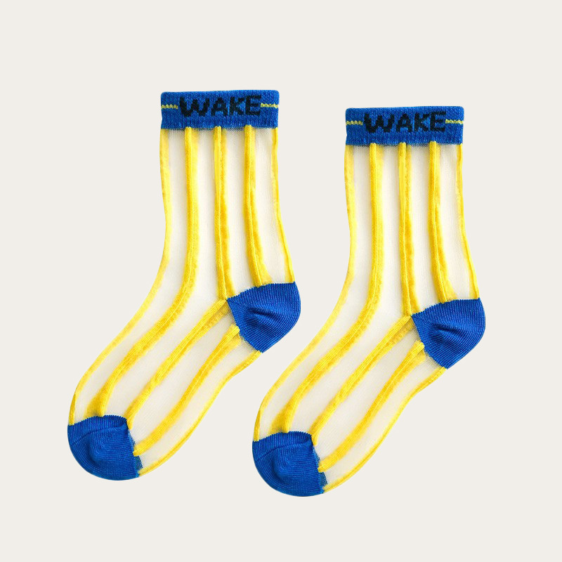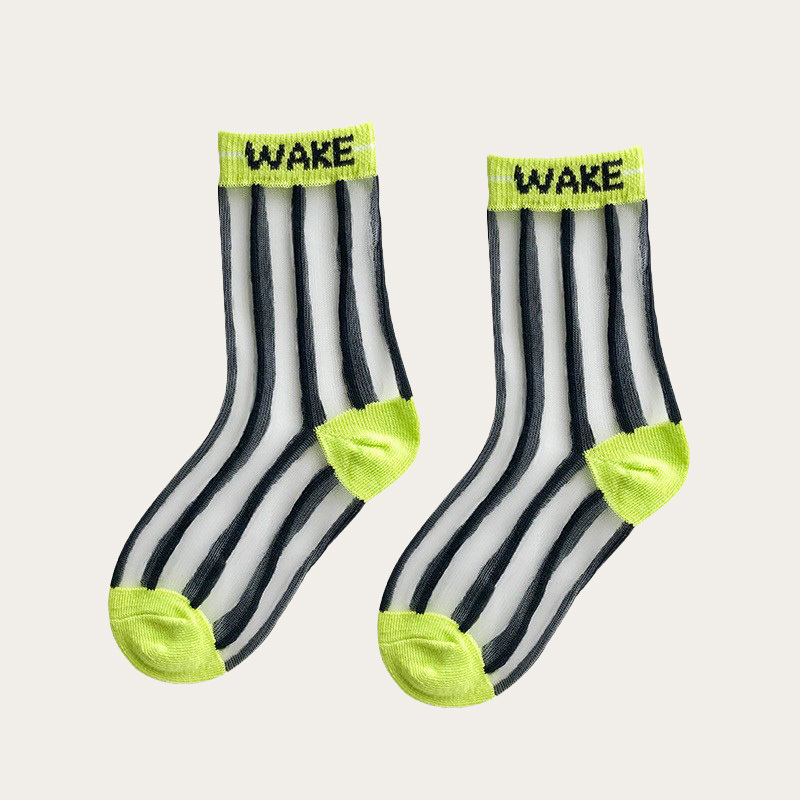 Children's summer thin breathable mesh socks, striped letter decoration, simple and lovely.