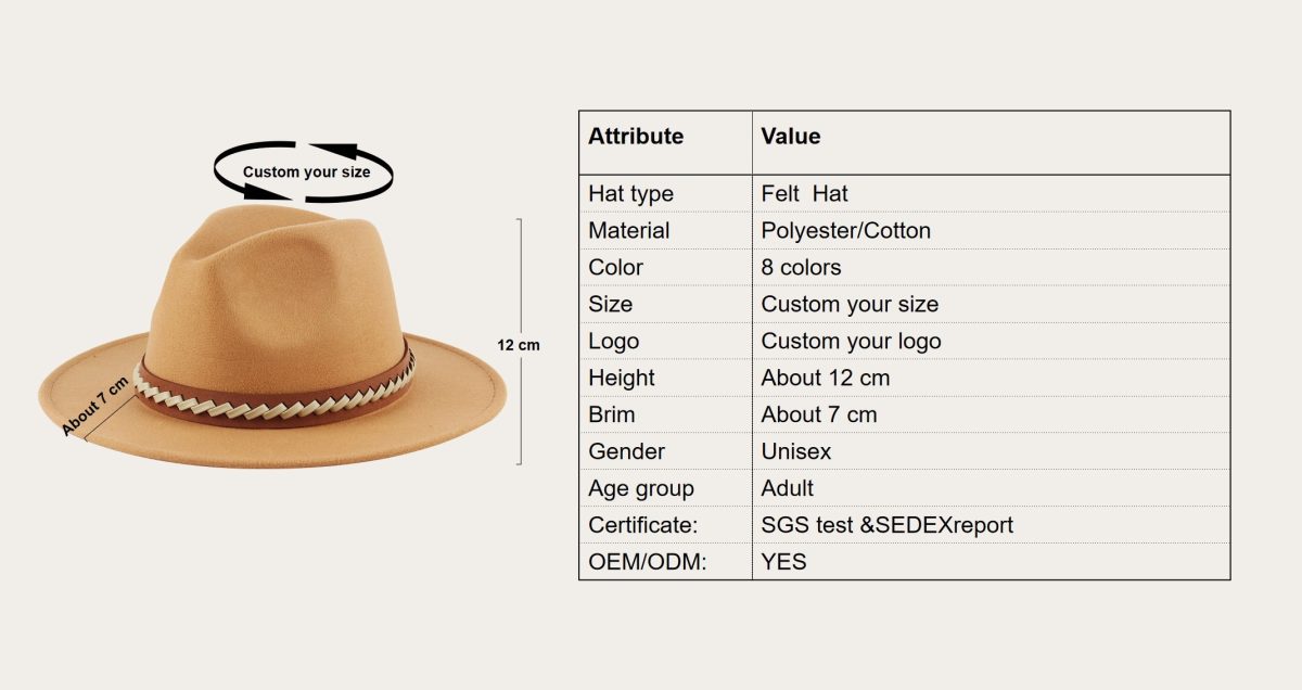 We have fedora Panama hat, cowboy hat, bowler hat and other hats. Welcome to contact us for more hat styles.