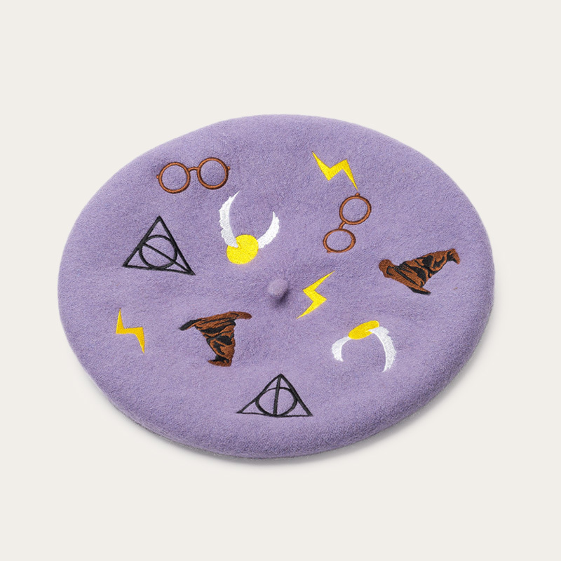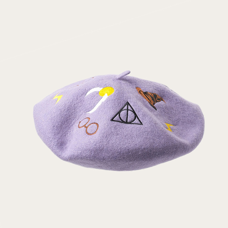 Patterned embroidered woollen beret