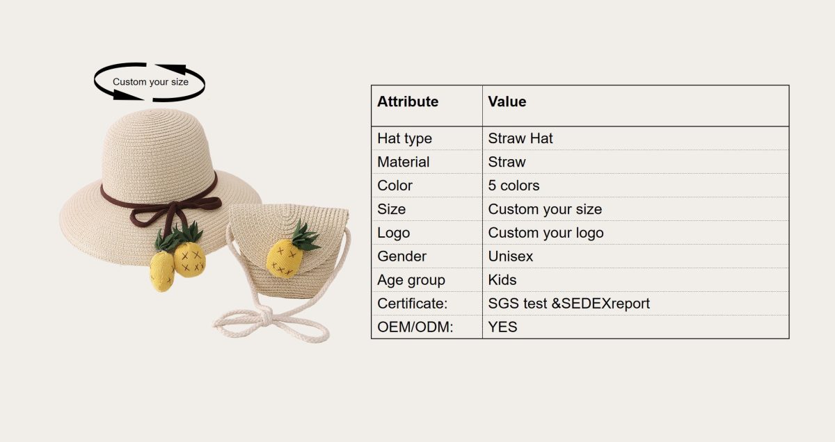 Pineapple hat bag set for kids