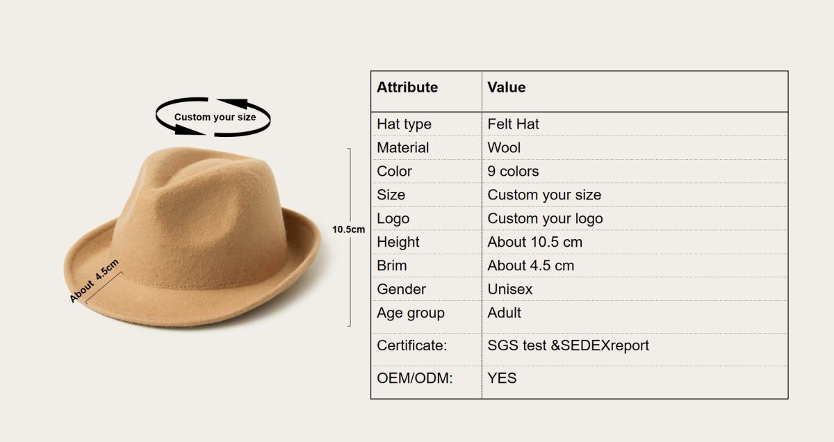 We have  fedora Panama hat, cowboy hat, bowler hat and other hats. Welcome to contact us for more hat styles.