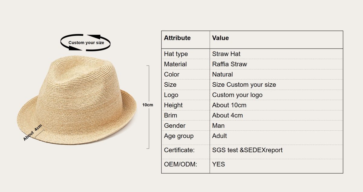 We have straw fedora Panama hat, cowboy hat, bowler hat and other hats. Welcome to contact us for more hat styles.