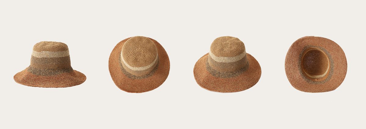 A bow adorns a raffia straw hat