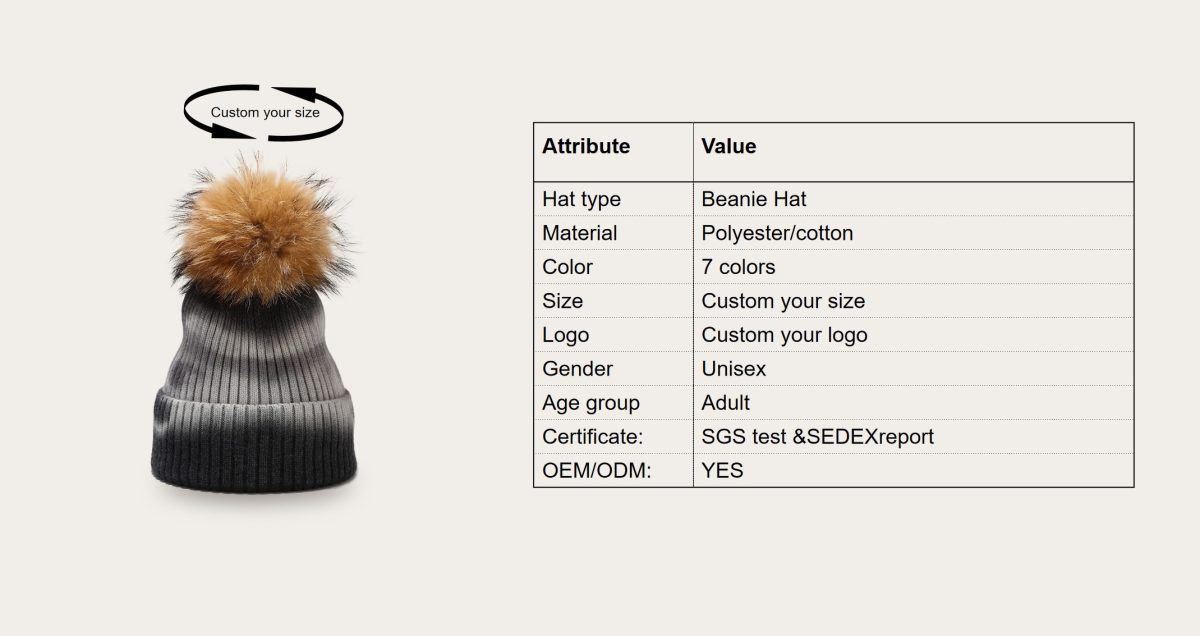 We have a variety of cotton wool, pure knit beanie hat, or you can contact us to customize your own beanie hat.