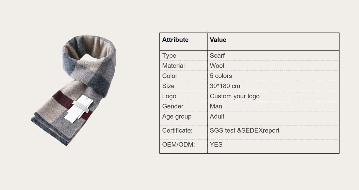 The scarf is made of Australian wool, which is delicate and soft. The solid wool ensures the scarf's excellent cold resistance in winter.
